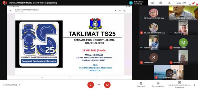 24 Mei 2021 | Aktiviti TerkiniTaklimat TS 25 Jaringan dan Jalinan Komuniti merupakan Program Transformasi Sekolah 2025 (TS25) merupakan sebahgian daripada usaha Kementerian Pemdidikan Malaysia ke arah meningkatkan kemenjadian murid dan sekolah berkualiti.