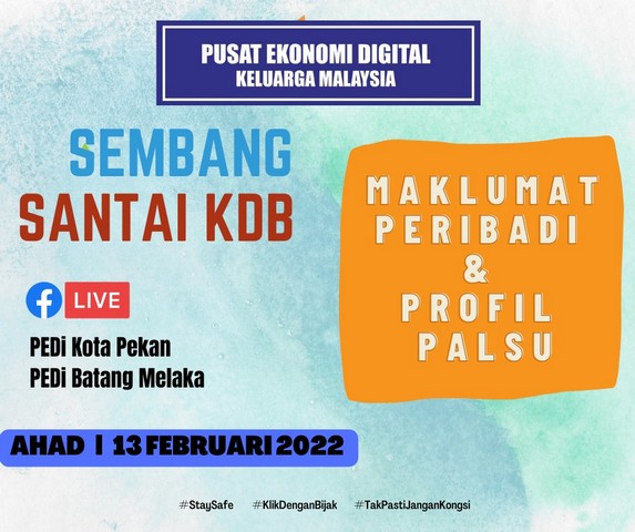 14 Februari 2022 | Aktiviti TerkiniPada 13 Februari 2022 bersamaan hari Ahad, PEDi Batang Melaka telah bekerjasama dengan PEDi Kota Pekan untuk mengadakan sesi LIVE Sembang Santai bertajuk “Maklumat Palsu & Profil Palsu” di Page Facebook PEDi masing-masing.