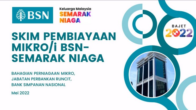 - Nikmati tawaran dari BSN dengan Skim Mikro Kredit Semarak Niaga. Dapatkan pembiayaan / pinjaman sehingga RM75,000* serta kadar keuntungan tetap serendah 4% setahun.