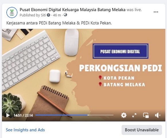 PEDi Batang Melaka berkerjasama dengan PEDi Kota Pekan membuat siaran Lansung di Facebook Page masing-masing.