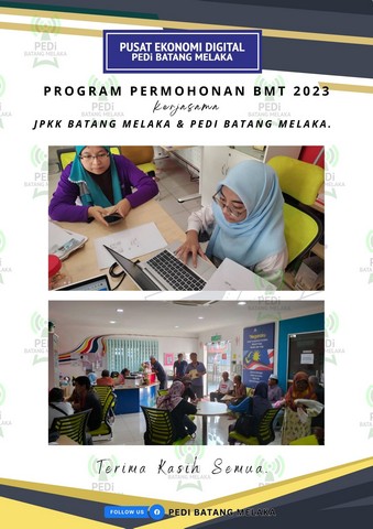 20 Ogos 2023 | Aktiviti TerkiniPEDi Batang Melaka dengan kerjasama JPKK Batang Melaka telah membuat Program Komuniti iaitu membantu mengisi permohonan Bantuan Musim Tengkujuh (BMT) 2023. Program ini bertujuan membantu Pekebun Kecil RISDA di Batang Melaka yang tidak mempunyai akses internet di rumah untuk memohon bantuan secara atas talian. Terima kasih diucapkan kepada semua yang terlibat.