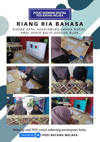 21 Januari 2024 | Aktiviti TerkiniPada 20 Januari 2024 bersamaan hari Sabtu, PEDi Batang Melaka telah menganjurkan aktiviti Riang Ria Bahasa. Kelas ini bertujuan untuk memperkukuhkan pemahaman Bahasa Melayu melalui pelbagai aktiviti.