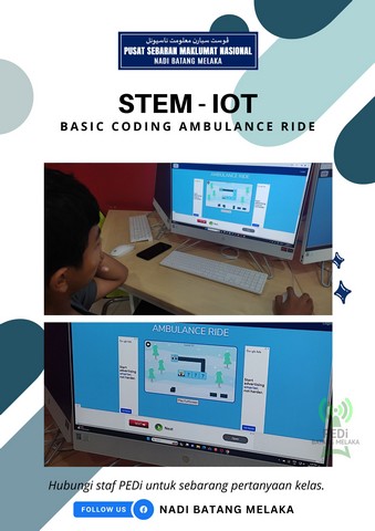 25 Mac 2024 | Aktiviti TerkiniPada 24 Mac 2024 bersamaan hari Ahad, NADI Batang Melaka telah mengadakan kelas Basic Coding: Ambulance Ride. Tujuan kelas ini diadakan bertujuan mengajar konsep asas coding kepada kanak-kanak dengan cara yang interaktif dan menyeronokkan.