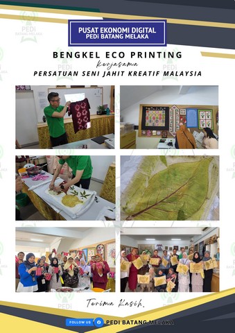 Pada 19 Februari 2024 bersamaan hari Isnin, staf PEDi Batang Melaka telah menghadiri Program Bengkel Eco Printing anjuran Persatuan Seni Jahitan Kreatif Malaysia. Bengkel ini bertujuan untuk memperkenalkan kemahiran dalam bidang seni jahitan kreatif, Natural Dye dan Eco Printing.