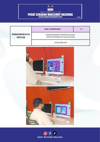 19 Oktober 2025 | Aktiviti TerkiniPada 18 Oktober 2025 bersamaan hari Sabtu, Webinar Penipuan Pembelian Dalam Talian di bawah bimbingan Encik Harith telah diadakan. Tujuan utama program ini adalah untuk memberi kesedaran kepada peserta tentang ancaman penipuan pembelian dalam talian yang semakin berleluasa, serta membimbing mereka mengenal pasti taktik penipuan yang licik agar dapat melindungi diri dan kewangan ketika melakukan urusan dalam talian.
