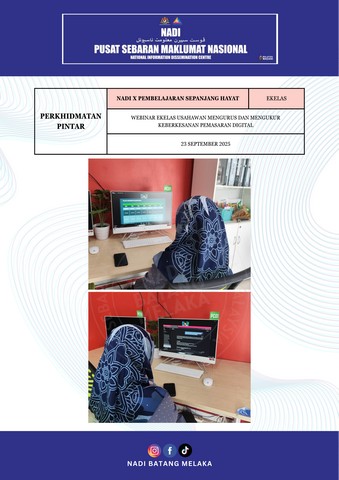 24 September 2025 | Aktiviti TerkiniPada 23 September 2025 bersamaan hari Selasa, Webinar eKelas Usahawan Mengurus & Mengukur Keberkesanan Pemasaran Digital di bawah bimbingan Encik Hanafi Shahrain telah diadakan. Tujuan utama program ini adalah untuk membimbing usahawan kecil dan sederhana mengurus kempen pemasaran digital dengan lebih cekap, memantau hasil dengan tepat, serta mengelakkan pembaziran kos melalui strategi pemasaran yang lebih tersusun dan berimpak tinggi.