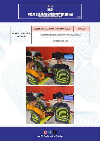 29 September 2025 | Aktiviti TerkiniPada 28 September 2025 bersamaan hari Ahad, Kesihatan Siber dan Perlindungan Data dalam e-Sukan telah diadakan melalui platform LMS eSport. Tujuan utama program ini adalah untuk memberi kesedaran kepada peserta mengenai kepentingan menjaga keselamatan data peribadi dan akaun e-sukan, memahami ancaman siber yang wujud dalam komuniti permainan digital serta mempraktikkan langkah-langkah keselamatan bagi mengelakkan risiko kecurian akaun dan serangan siber.