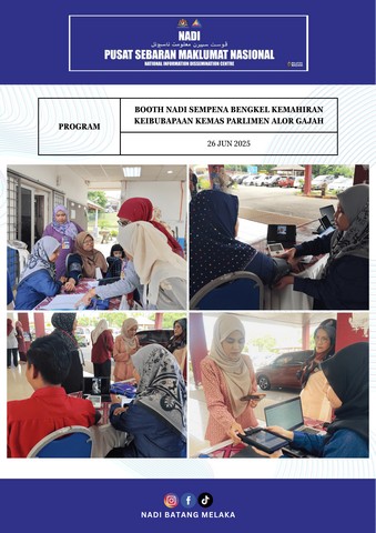 Pada 26/06/2025 bersamaan hari Khamis, Booth NADI Sempena Bengkel Kemahiran Keibubapaan KEMAS Parlimen Alor Gajah di bawah bimbingan petugas NADI telah dijalankan. Tujuan utama program ini adalah untuk memperkenalkan perkhidmatan yang ditawarkan oleh NADI Batang Melaka kepada kakitangan Pejabat KEMAS Parlimen Alor Gajah serta memberikan kesedaran berkaitan kepentingan kesihatan dalam kehidupan seharian.