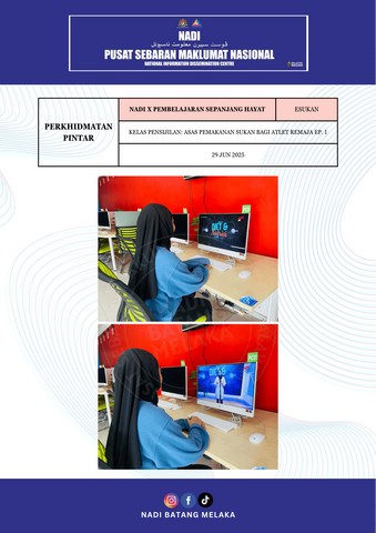 29 Jun 2025 | Aktiviti TerkiniPada 28/06/2025 bersamaan hari Sabtu, Kelas Pensijilan – Asas Pemakanan Sukan bagi Atlet Remaja EP. 1 melalui platform LMS e-Sukan telah dijalankan. Tujuan utama program ini adalah untuk memberi pendedahan awal dan asas kepada para atlet remaja mengenai kepentingan pemakanan sihat dalam meningkatkan prestasi sukan, daya ketahanan fizikal serta pemulihan selepas aktiviti intensif.