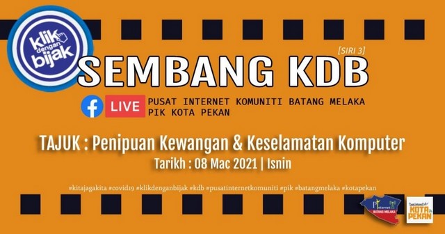 Pada 08 Mac 2021 bersamaan hari Isnin, PIK Batang Melaka telah bekerjasama dengan PIK Kota Pekan membuat 1 sesi Live di facebook Page PIK masing-masing. Pada kali ini, Topik Keselamatan Komputer dan Penipuan Kewangan menjadi pilihan ini kerana melihat zaman kini terlalu banyak penggunaan komputer dan melayari internet. Setiap live akan disusuli dengan kuiz yang akan dimaklumakan melalui facebook page.