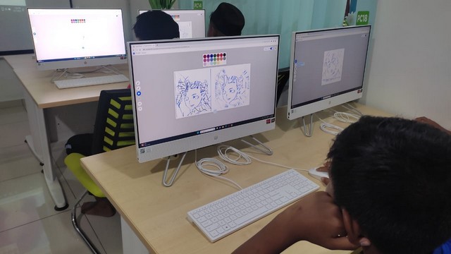 Seterusnya, di dalam Giga Manga, peserta mencipta watak manga yang unik dengan bantuan AI. AutoDraw merupakan alat lukisan yang menggunakan AI. Peserta perlu menggunakan kreativiti untuk melukis beberapa objek dan AI akan memberi beberapa cadangan gambar yang telah dilukis dan peserta boleh memilih daripada cadangan tersebut. Kursus diakhiri dengan sesi perkongsian oleh staff PEDi tentang kesedaran keselamatan Internet iaitu Klik Dengan Bijak.