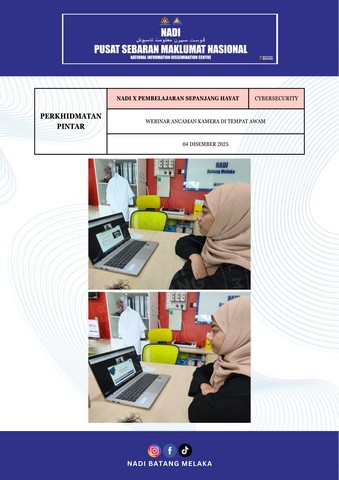 Pada 03 Disember 2025 bersamaan hari Rabu, Webinar Ancaman Kamera Tersembunyi telah dijalankan. Tujuan utama program ini adalah untuk memberi kesedaran kepada peserta tentang bahaya kamera tersembunyi, bagaimana ia berfungsi serta risiko penyalahgunaan teknologi ini yang boleh mengancam privasi dan keselamatan individu.