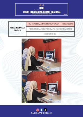 7 November 2025 | Aktiviti TerkiniPada 06 November 2025 bersamaan hari Khamis, Webinar Permulaan di Universiti, Masa Depan di Siber Sekuriti telah dijalankan. Tujuan utama program ini adalah untuk memberi pendedahan awal kepada peserta mengenai asas, peluang kerjaya, cabaran semasa serta kepentingan bidang keselamatan siber dalam era pendidikan tinggi yang semakin berteraskan teknologi dan digitalisasi.
