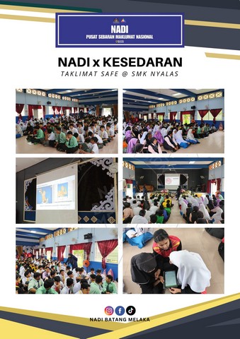 14 Januari 2025 | Aktiviti TerkiniPada 13/01/2025 bersamaan hari Isnin, Taklimat SAFE di SMK Nyalas oleh NADI Batang Melaka dan NADI Kota Pekan telah dijalankan. Tujuan utama program ini adalah untuk memberi kesedaran kepada pelajar tentang bahaya buli siber, keselamatan semasa berinternet, dan kepentingan menjaga etika dalam talian.