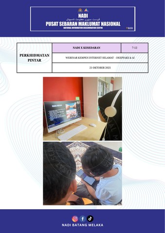 22 Oktober 2025 | Aktiviti TerkiniPada 21 Oktober 2025 bersamaan hari Selasa, Webinar Deep Fake & AI di bawah bimbingan Encik Harith telah diadakan. Tujuan utama program ini adalah untuk memberi kesedaran kepada peserta mengenai ancaman teknologi Deepfake dan kecerdasan buatan (AI) yang semakin sukar dibezakan dengan kandungan sebenar. Program ini juga bertujuan mendidik peserta supaya lebih berwaspada terhadap penipuan digital, memahami tanda-tanda manipulasi kandungan, serta mengetahui langkah pencegahan agar tidak menjadi mangsa penyalahgunaan teknologi pintar.