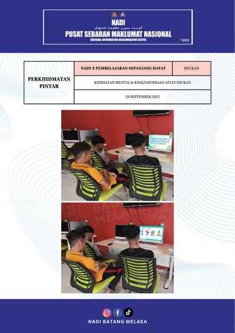 29 September 2025 | Aktiviti TerkiniPada 28 September 2025 bersamaan hari Ahad, Kesihatan Mental & Kesejahteraan Atlet e-Sukan telah diadakan melalui platform LMS eSport. Tujuan utama program ini adalah untuk memberi kesedaran kepada peserta mengenai kepentingan menjaga kesihatan mental, memahami punca tekanan serta mempelajari cara mengawal emosi supaya prestasi kekal konsisten dan seimbang antara sukan digital serta kehidupan harian.